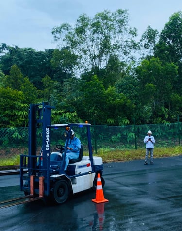 Mengikuti pelatihan operator forklift dari lembaga training resmi yang terakreditasi Kemnaker.